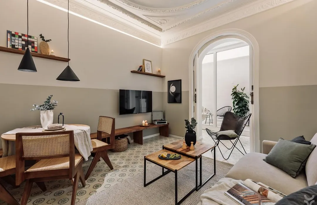 Halite - 2 bedrooms, terrace, and balcony in Gràcia appartement biedt gasten toegang tot een patio voorzien van airconditioning, en moderne gemakken zoals een TV. Deze accommodatie is uitgerust met een badkamer met een haardroger en toiletartikelen voor gasten.